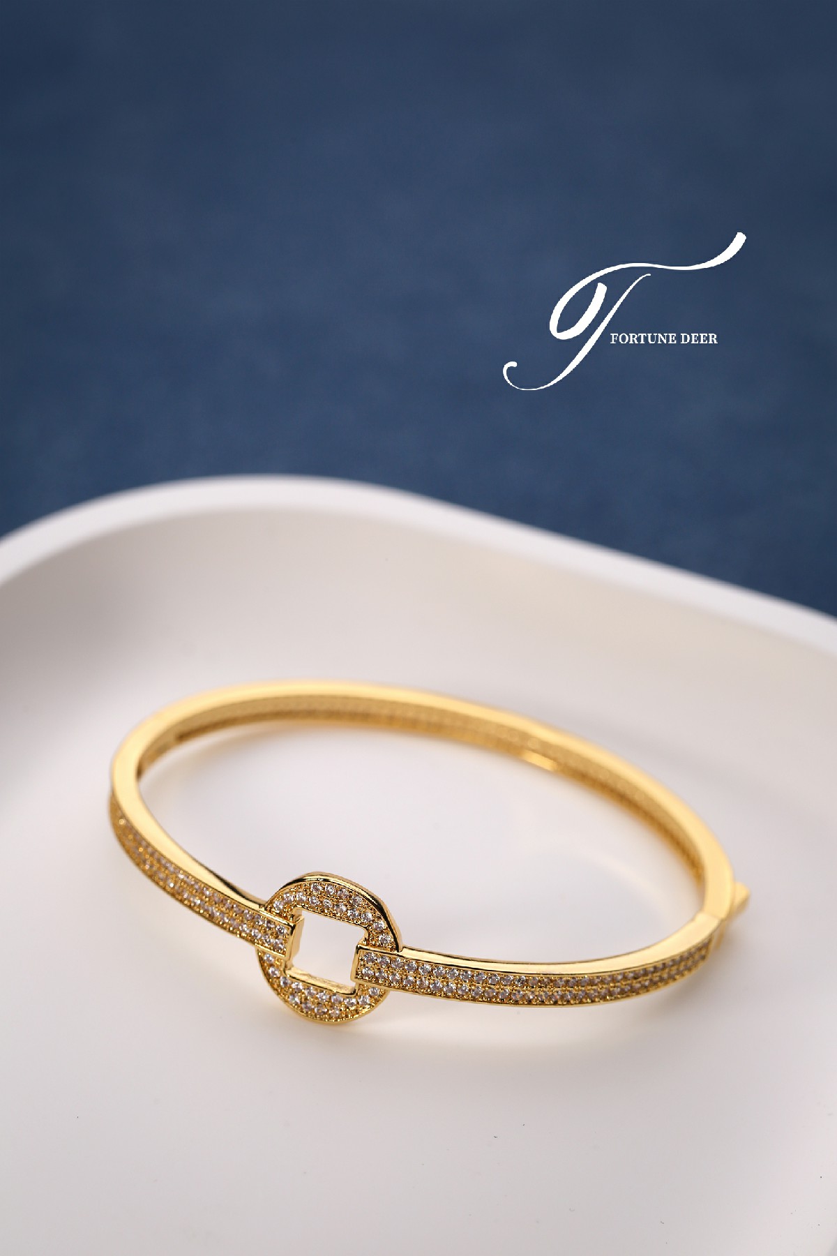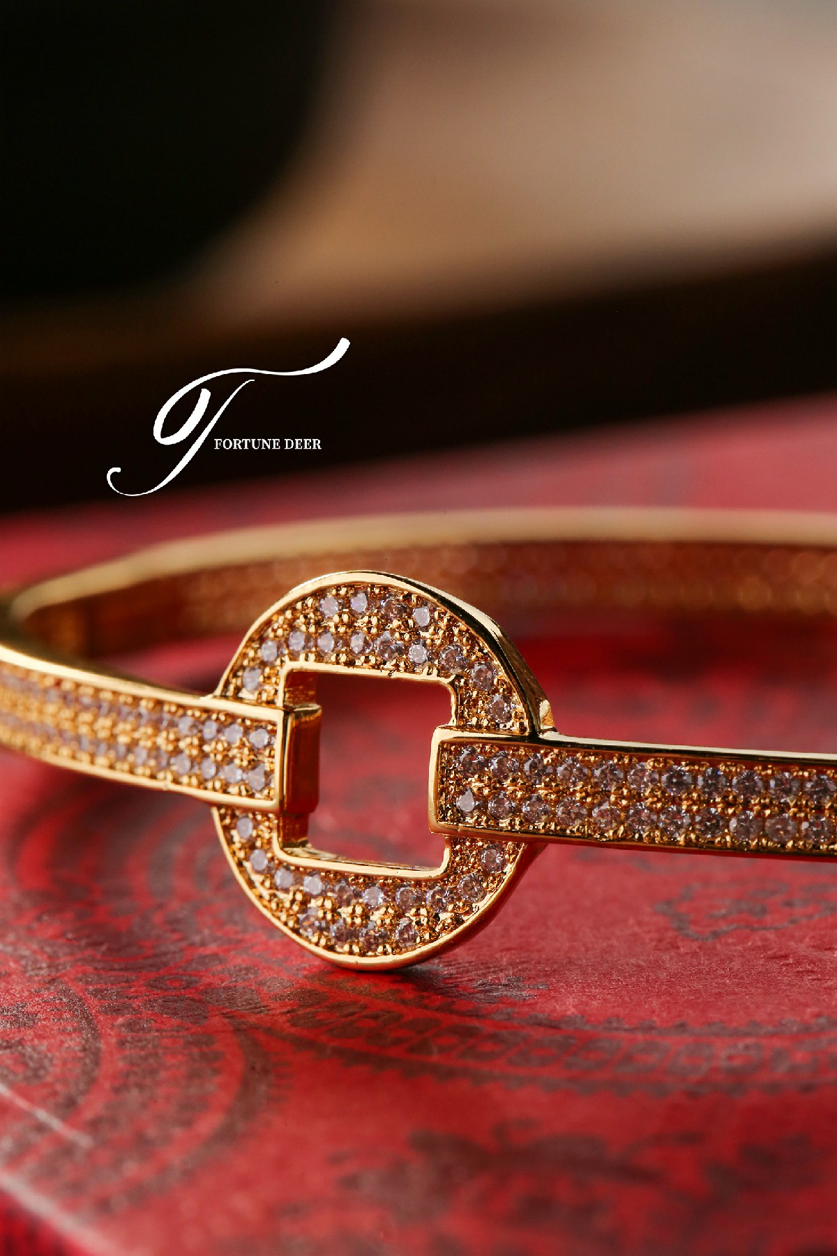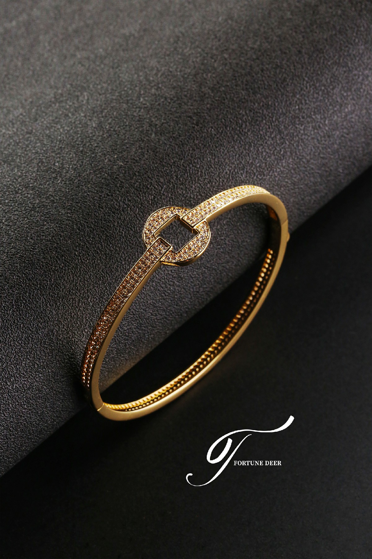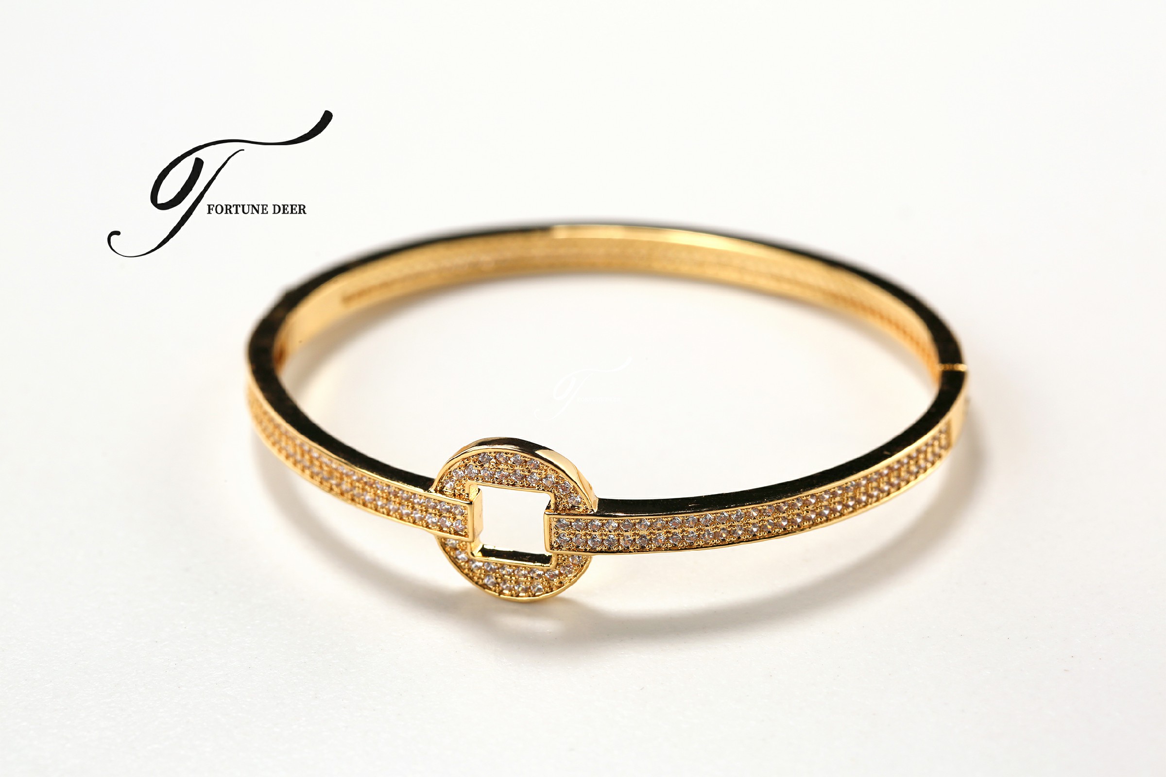 The Golden Prosperity Bracelet is inspired by the ancient Chinese square-round coin design, symbolizing wealth and prosperity. The bracelet is fully encrusted with sparkling zirconia, radiating brilliance and representing the continuous accumulation of good luck and fortune. The elegant geometric lines and golden setting create a perfect balance between traditional symbolism and modern elegance. Wearing this bracelet not only attracts good fortune but also symbolizes the steady growth of wealth and endless prosperity.