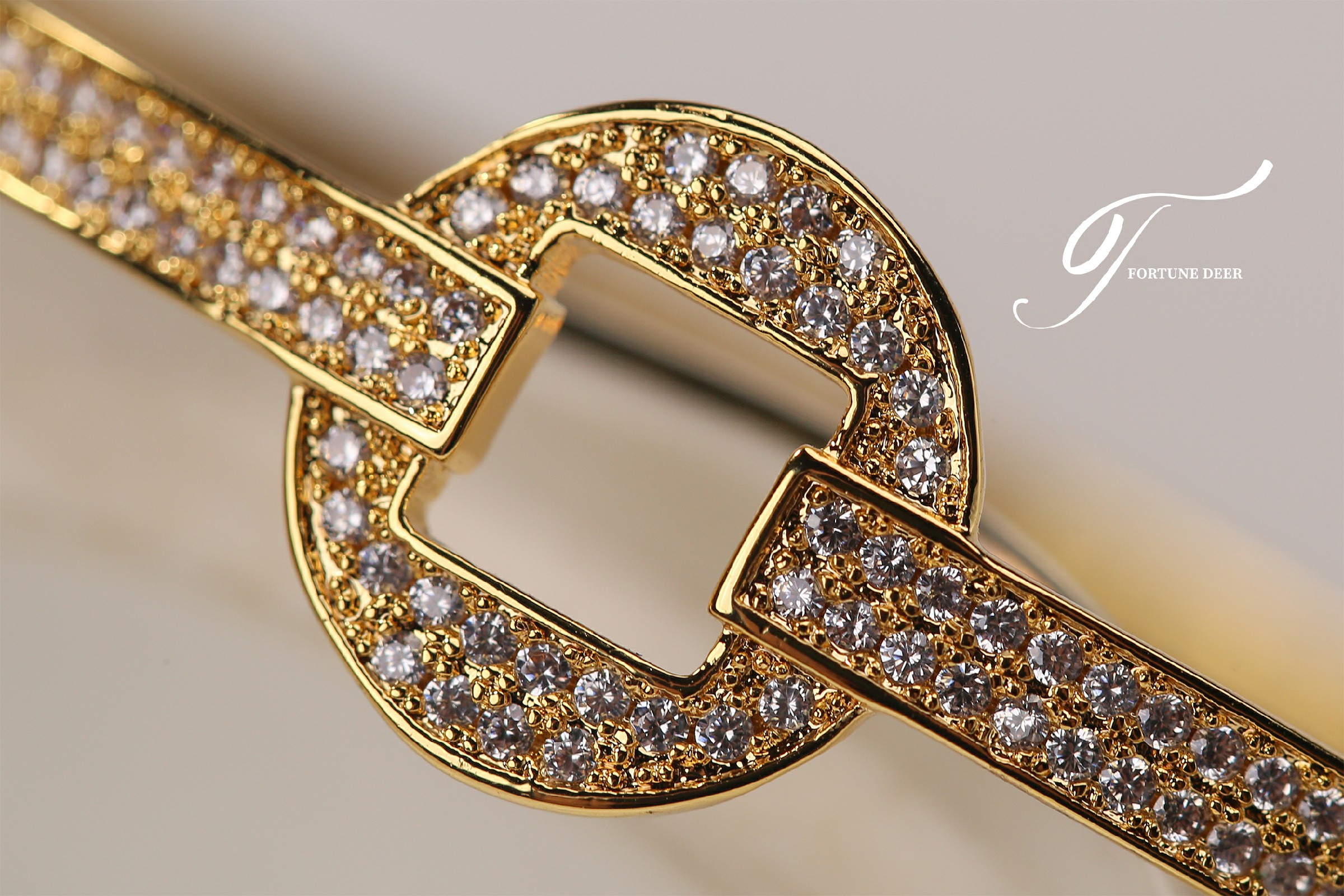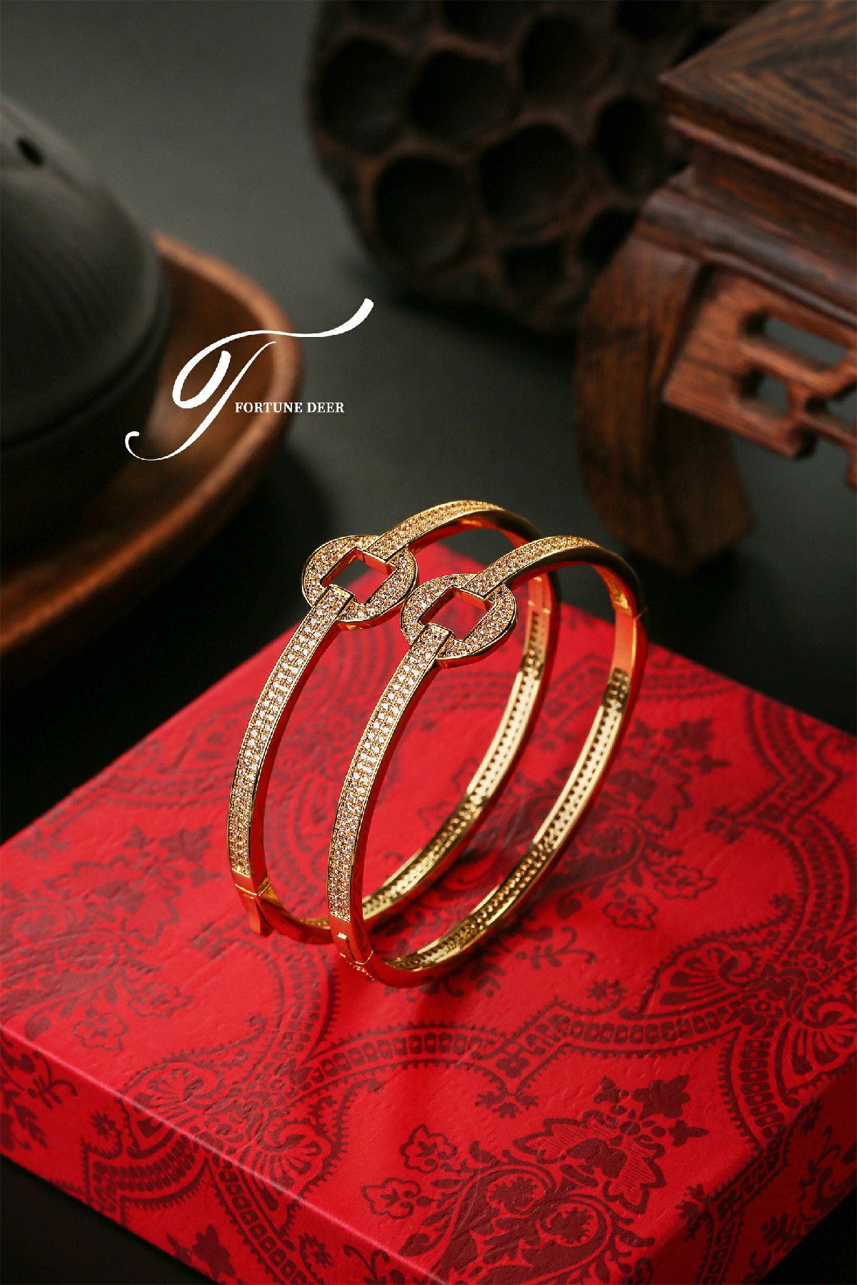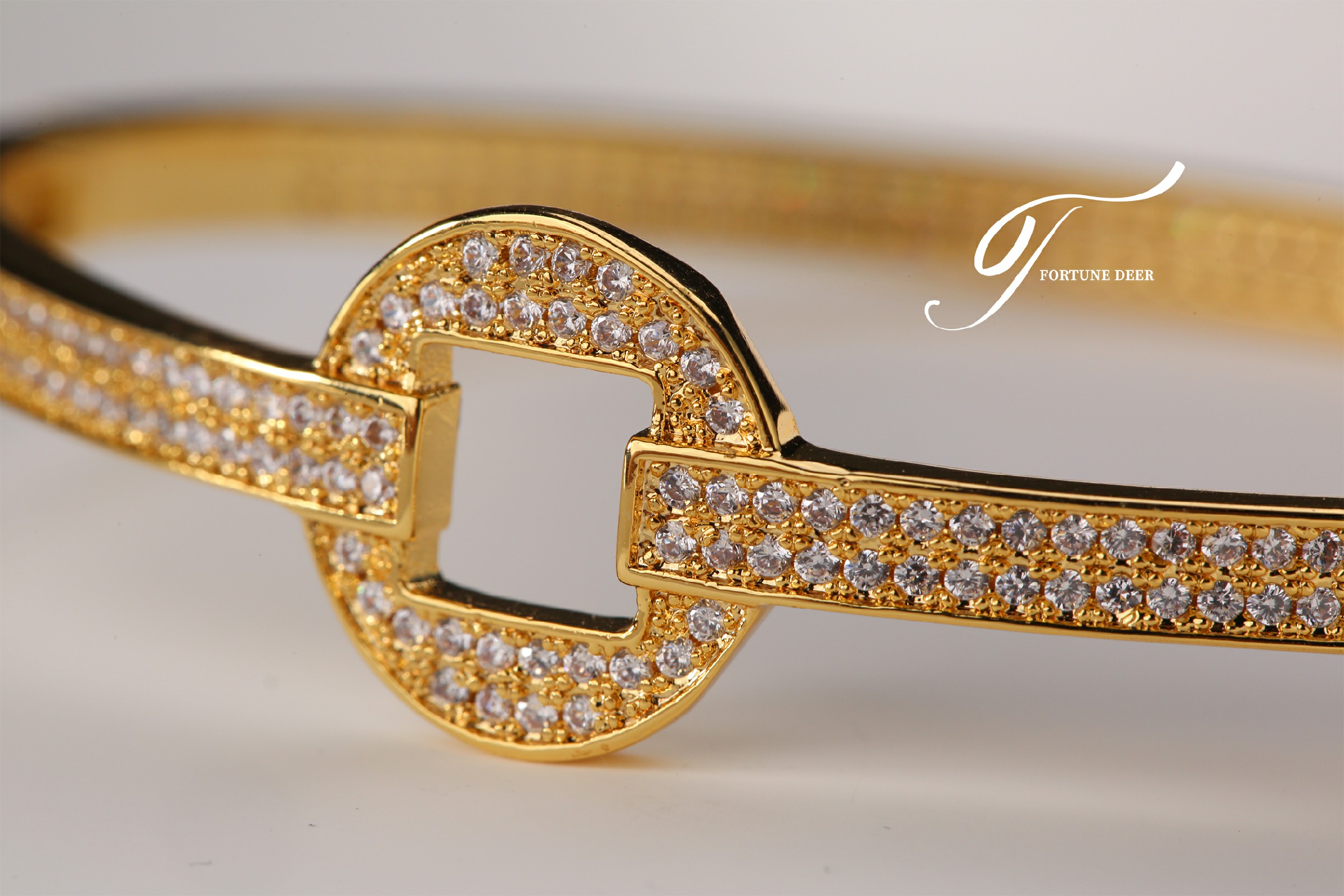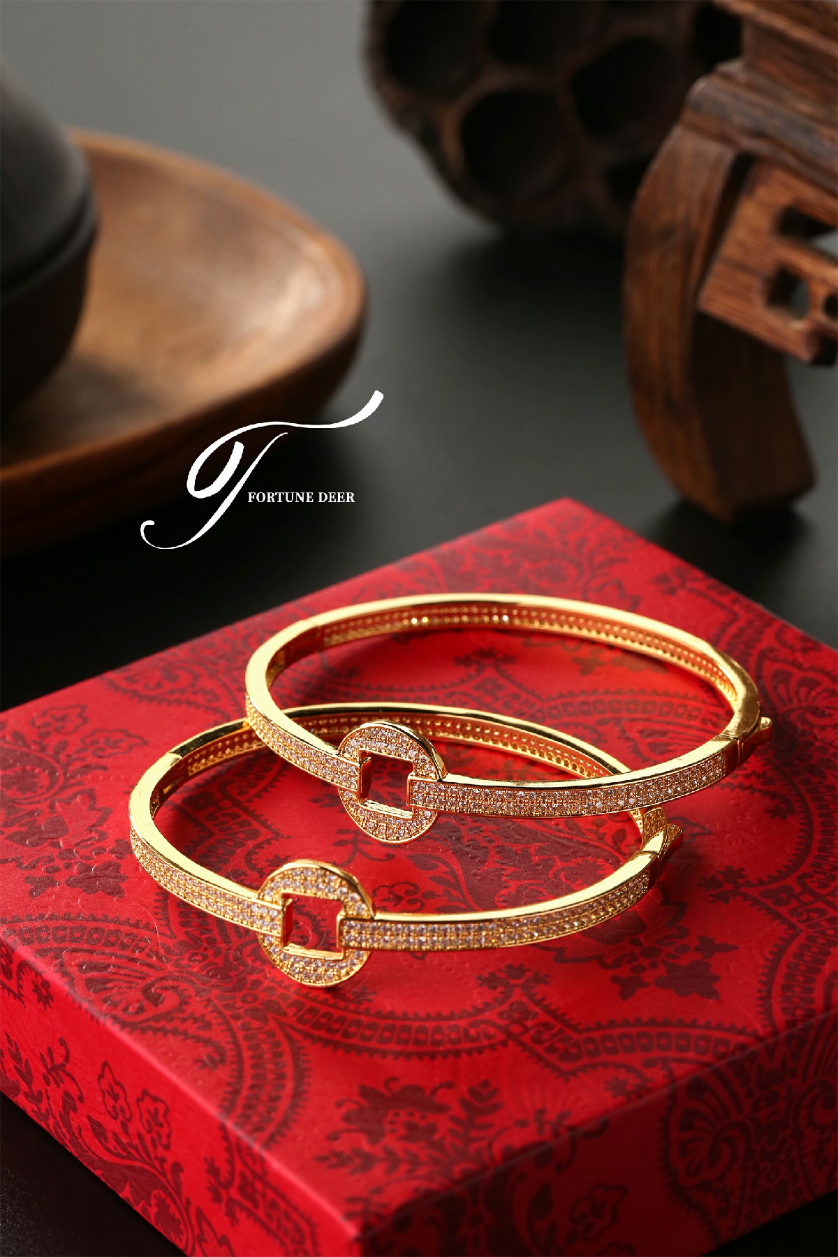 The Golden Prosperity Bracelet is inspired by the ancient Chinese square-round coin design, symbolizing wealth and prosperity. The bracelet is fully encrusted with sparkling zirconia, radiating brilliance and representing the continuous accumulation of good luck and fortune. The elegant geometric lines and golden setting create a perfect balance between traditional symbolism and modern elegance. Wearing this bracelet not only attracts good fortune but also symbolizes the steady growth of wealth and endless prosperity.